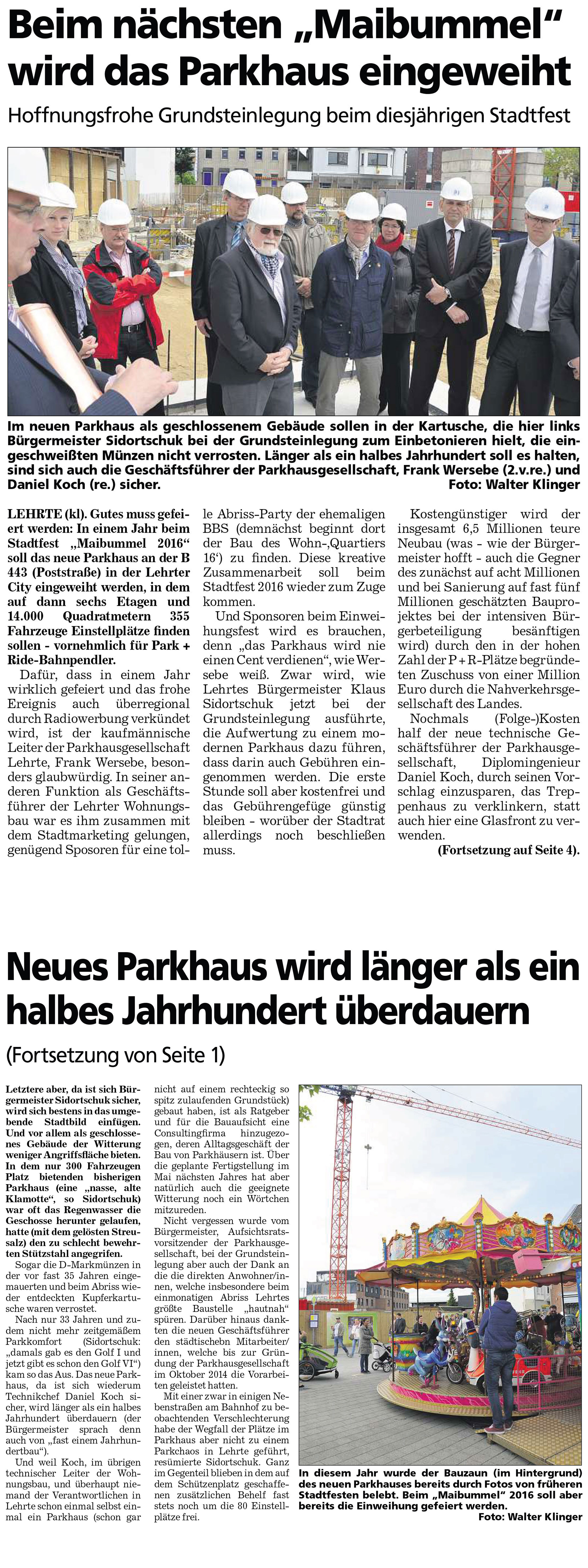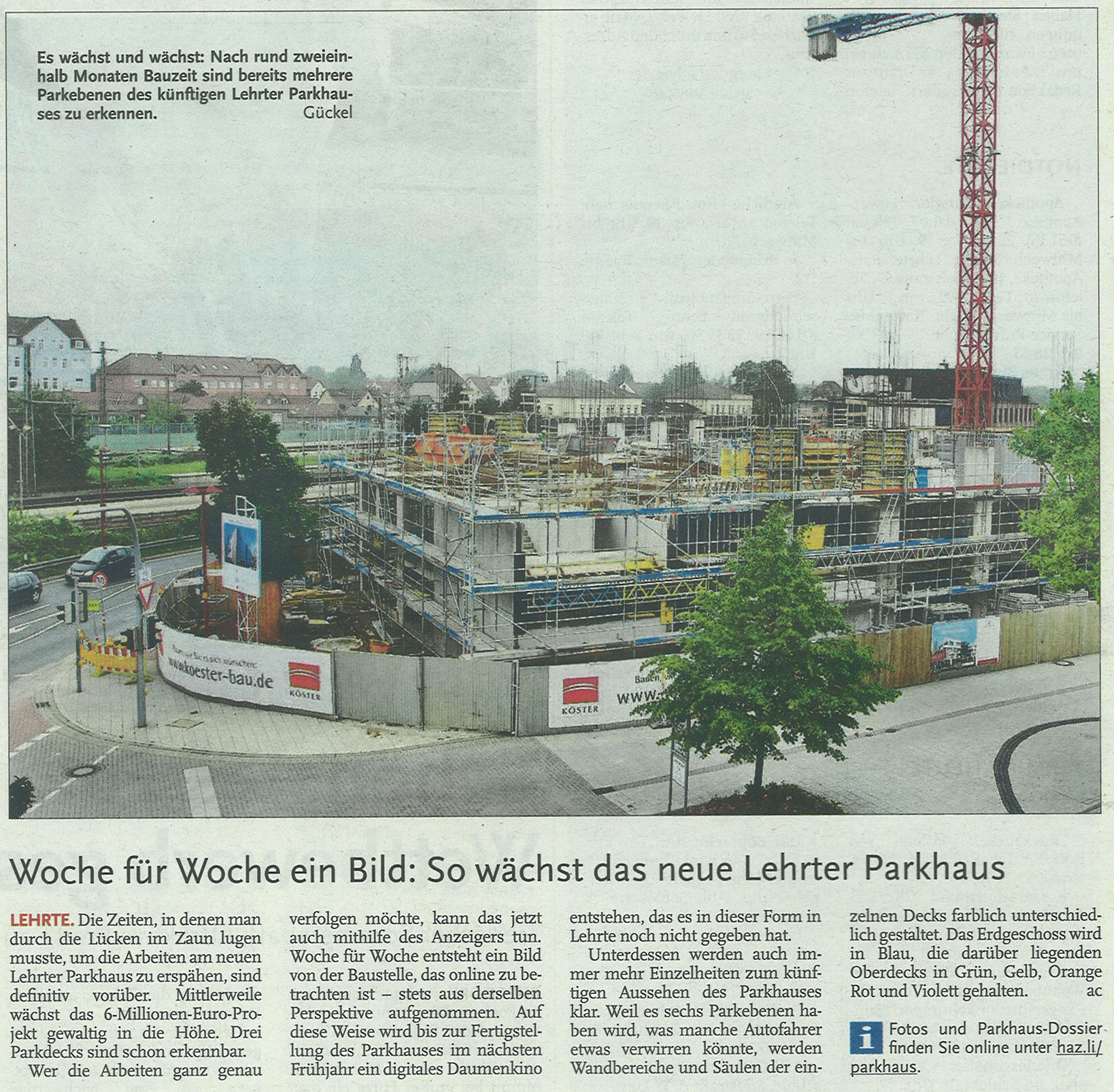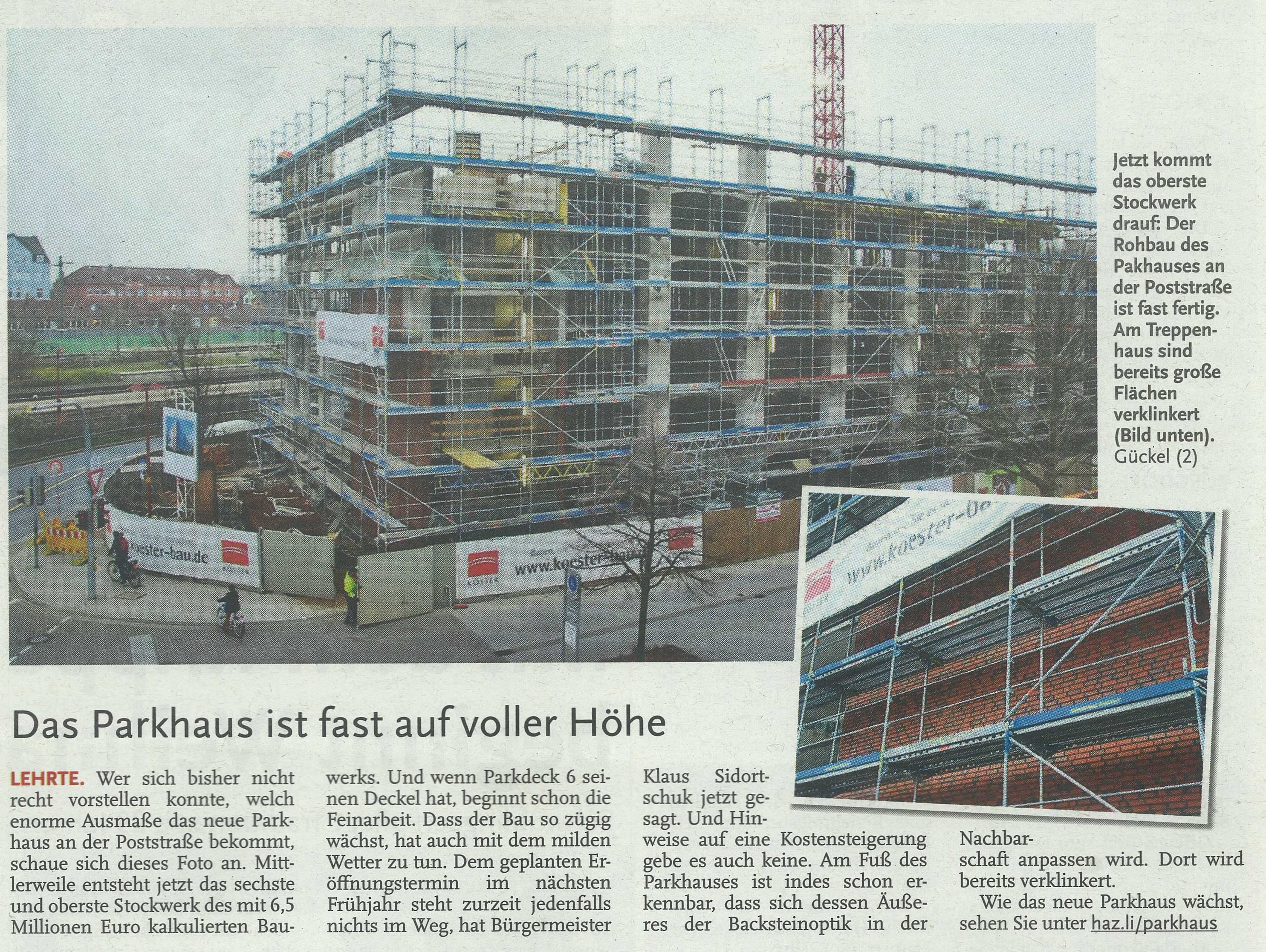 Anzeiger 02.02.2015 - Der Countdown für das Parkhaus läuft Ab 18. Februar 2015 bleiben die Schranken des Lehrter Parkhauses geschlossen Anzeiger Lehrte; Parkhaus; 02.02.2015 ho[...] PDF-Dokument [691.4 KB]